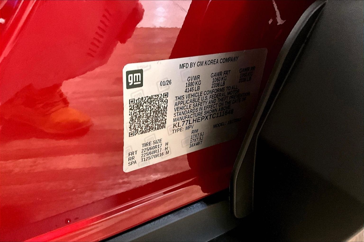 Apex Red 2026 Chevrolet Trax LT FWD 6-Speed Automatic ECOTEC 1.2L Turbo 2-Way Adjustable Front Head Restraints, 3.50 Final Drive Axle Ratio, 4-Way Manual Front Passenger Seat Adjuster, 4-Wheel Disc Brakes, 6 Speakers, 6-Speaker Audio System Feature, 6-Way Manual Driver Seat Adjuster, ABS brakes, Adaptive Cruise Control, Air Conditioning, Alloy wheels, AM/FM radio: SiriusXM, Auto High-beam Headlights, Automatic temperature control, Brake assist, Bumpers: body-color, Cloth/Evotex Seat Trim, Compass, Delay-off headlights, Driver Confidence Package, Driver door bin, Driver vanity mirror, Dual front impact airbags, Dual front side impact airbags, Electronic Stability Control, Emergency communication system: OnStar One Essentials, Exterior Parking Camera Rear, Front anti-roll bar, Front Bucket Seats, Front Center Armrest, Front Doors Keyless Open, Front reading lights, Front wheel independent suspension, Fully automatic headlights, Heated Driver and Front Passenger Seats, Heated Power-Adjustable Outside Mirrors, Heated Steering Wheel, Illuminated entry, Lane Change Alert with Side Blind Zone Alert, License Plate Front Mounting Package, Low tire pressure warning, LT Convenience Package, Occupant sensing airbag, Outside temperature display, Overhead airbag, Overhead console, Panic alarm, Passenger door bin, Passenger vanity mirror, Power door mirrors, Power steering, Power windows, Premium audio system: Chevrolet Infotainment 3, Radio data system, Radio: AM/FM Stereo Audio System, Rear Cross Traffic Alert, Rear Park Assist, Rear window defroster, Rear window wiper, Remote keyless entry, Security system, SiriusXM Trial Subscription, Speed control, Split folding rear seat, Spoiler, Steering wheel mounted audio controls, Tachometer, Telescoping steering wheel, Tilt steering wheel, Traction control, Trip computer, Variably intermittent wipers, Wheels: 17 Inch Gray-Painted Machined Aluminum Alloy, Wireless Apple CarPlay/Wireless Android Auto, Wrapped Steering Wheel.