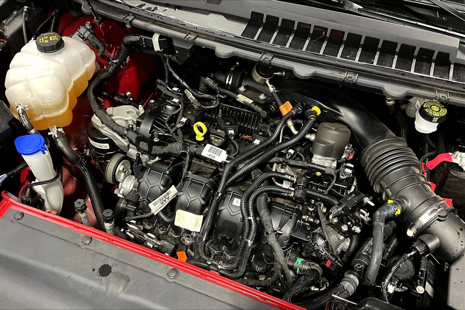 AWD, 3.80 Axle Ratio, 4-Wheel Disc Brakes, 6 Speakers, ABS brakes, ActiveX Trimmed Heated Bucket Seats, Air Conditioning, Alloy wheels, AM/FM radio: SiriusXM with 360L, AM/FM Stereo, Auto High-beam Headlights, Auto-dimming Rear-View mirror, Automatic temperature control, Brake assist, Bumpers: body-color, Compass, Delay-off headlights, Driver door bin, Driver vanity mirror, Dual front impact airbags, Dual front side impact airbags, Electronic Stability Control, Emergency communication system: SYNC 4 911 Assist, FordPass Connect, Four wheel independent suspension, Front anti-roll bar, Front Bucket Seats, Front Center Armrest w/Storage, Front dual zone A/C, Front reading lights, Fully automatic headlights, Heated door mirrors, Heated front seats, Illuminated entry, Knee airbag, Leather steering wheel, Low tire pressure warning, Occupant sensing airbag, Outside temperature display, Overhead airbag, Overhead console, Panic alarm, Passenger door bin, Passenger vanity mirror, Power door mirrors, Power driver seat, Power Liftgate, Power passenger seat, Power steering, Power windows, Rear anti-roll bar, Rear Parking Sensors, Rear reading lights, Rear seat center armrest, Rear window defroster, Rear window wiper, Remote keyless entry, SiriusXM w/360L, Speed control, Speed-Sensitive Wipers, Split folding rear seat, Spoiler, Steering wheel mounted audio controls, SYNC 4A w/Enhanced Voice Recognition, Tachometer, Telescoping steering wheel, Tilt steering wheel, Traction control, Trip computer, Variably intermittent wipers, AWD.